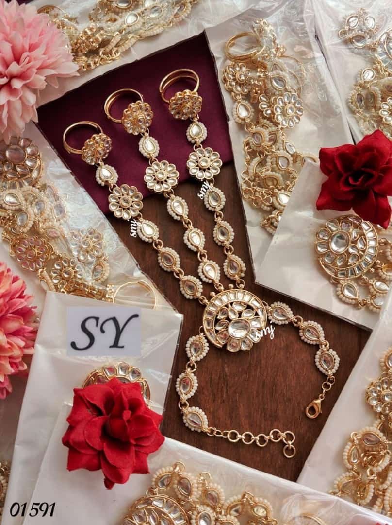 - Golden Hand Harness/Bracelet Studded with Kundan