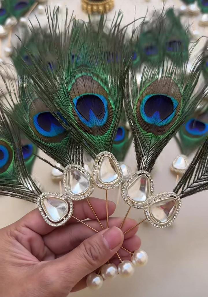 Barati welcome kundan brooch with morpankh (Set of 25)