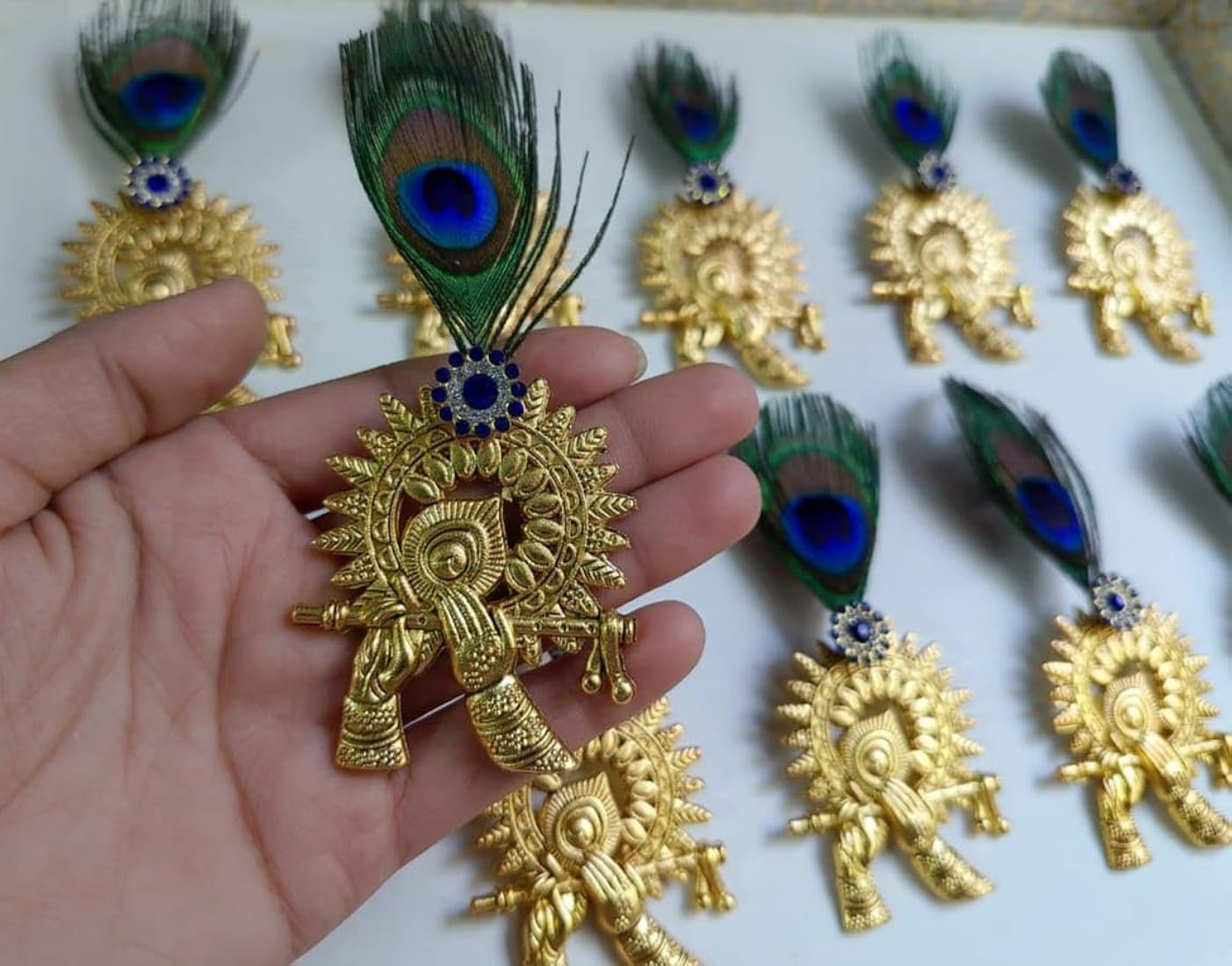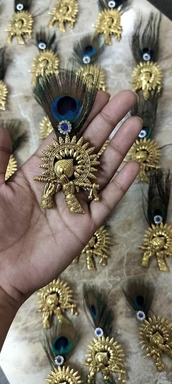 Oxodised Krishna brooches with morpankh