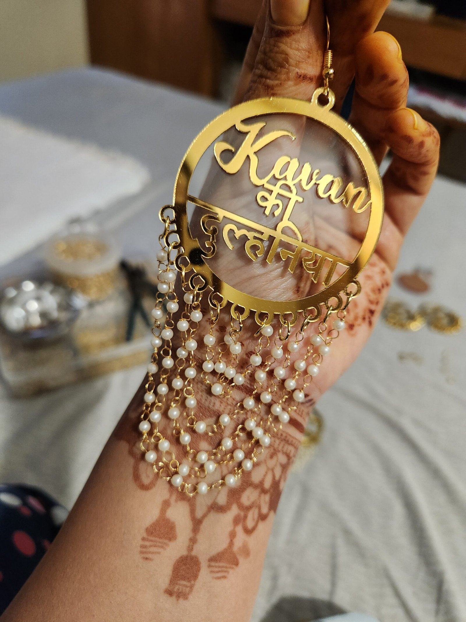 Description: Hand-made light weighed customized “dulhaniya” gunghroo earrings in acrylic material.